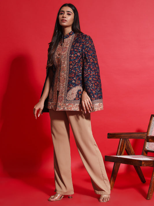 Woven Designer Luxury Cape Jacket for Women | Blue