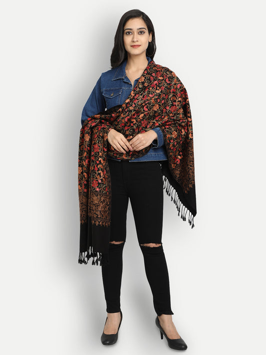 Kashmiri Aari Embroidery Woollen Stole | Black