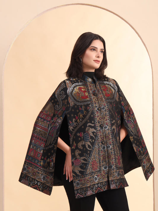Woven Designer Luxury Cape Jacket for Women | Black