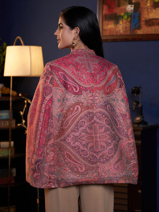 Women's Royal Woven Cape Shrug with Paisley Pattern | Magenta