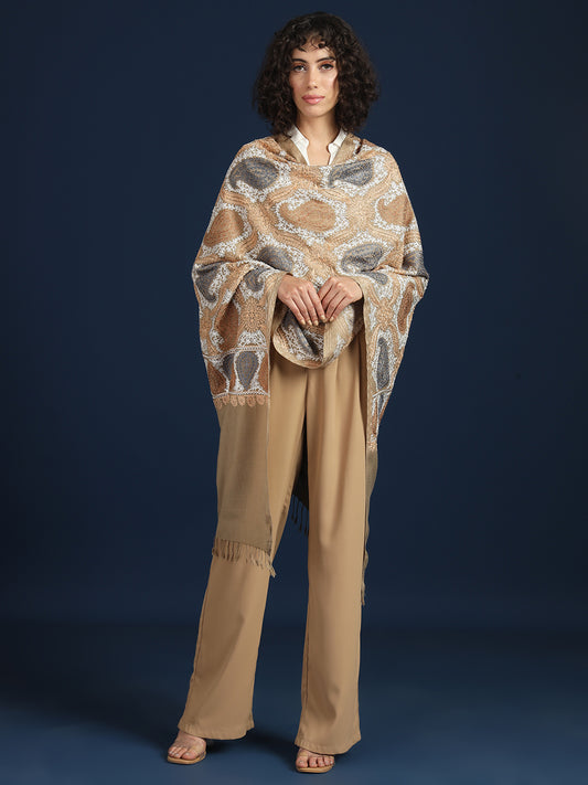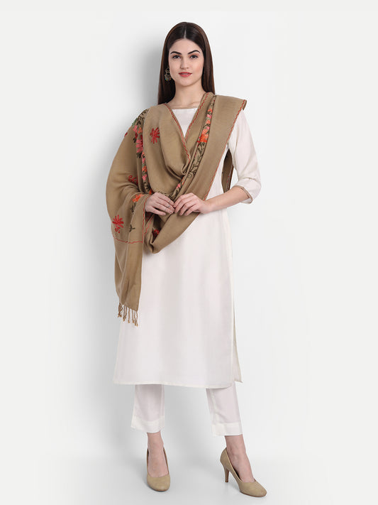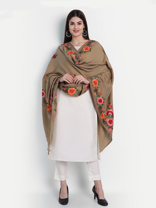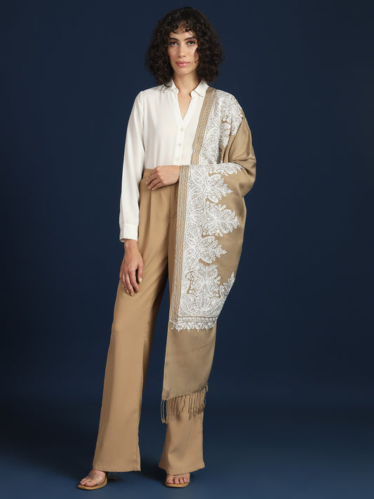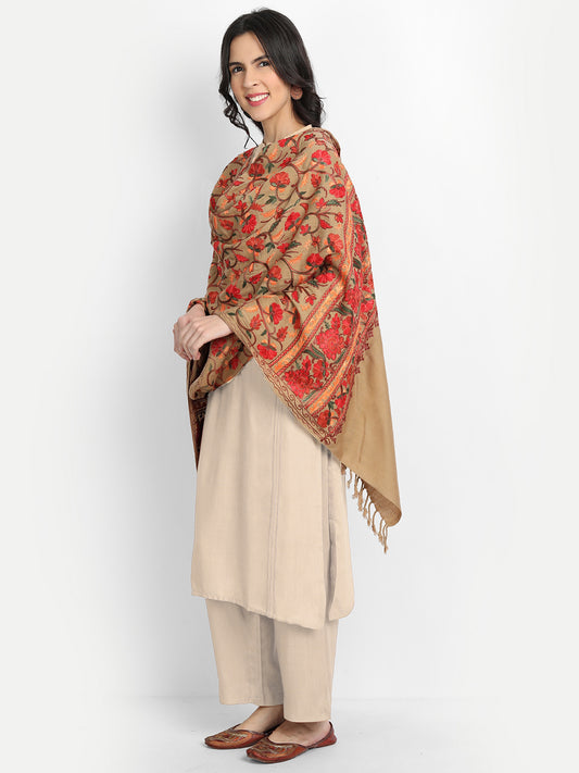 Women Kashmiri Aari Embroidery Woollen Stole | Brown
