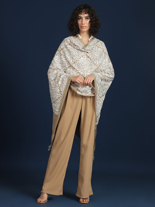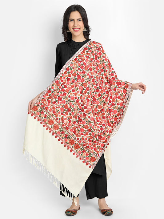 Kashmiri Aari Embroidered Woollen Stole | Off White