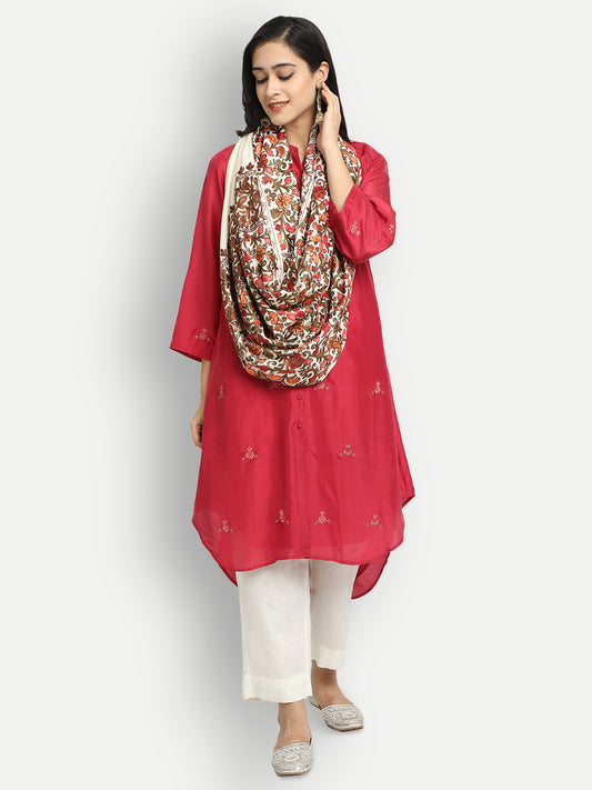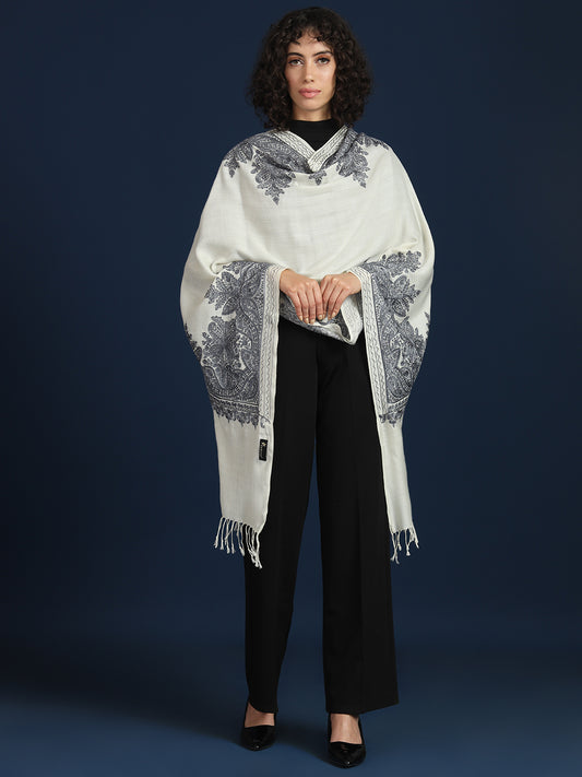 Kashmiri Aari Embroidery Woollen Stole | Off White