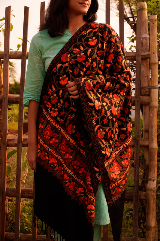 Kashmiri Aari Embroidery Woollen Stole | Black