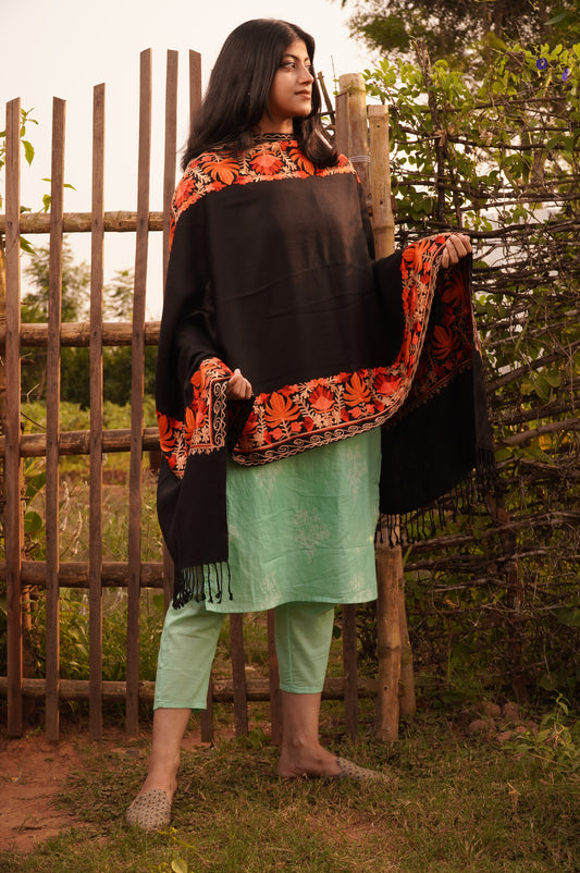 Punjabi Stole with Kashmiri Aari Jaal Embroidery | Black
