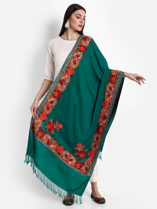 Kashmiri Aari Embroidery Woollen Stole | Seagreen