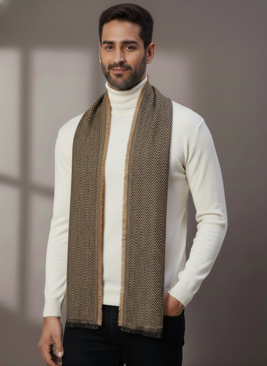 Soft Woollen Muffler for Men | Light Brown Zigzag Scarf