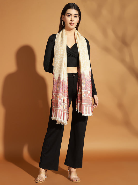 Kani Weave Pure Wool Shawl with Royal Darbar Motifs Borders | Off White