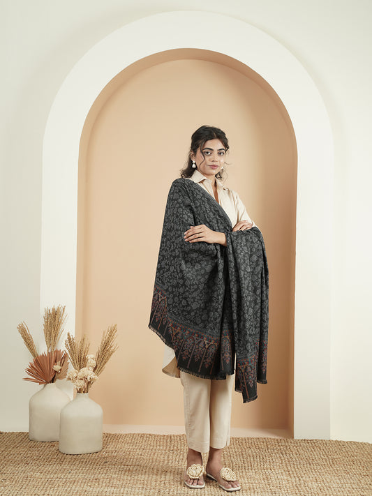 Kani Floral Weave Soft Woolen Shawl for Women | Black