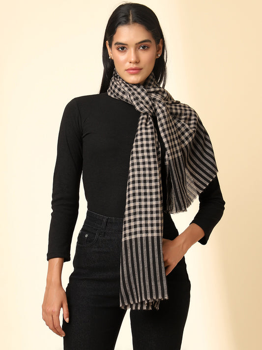 Women Pure Wool Woven Checks Soft Touch Stole | Black