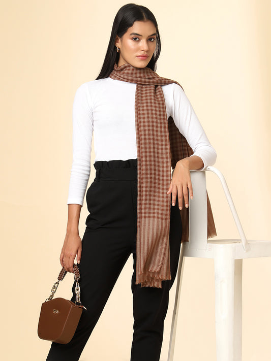 Women Pure Wool Woven Checks Soft Touch Stole | Brown