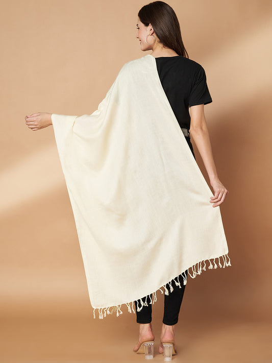 Woollen Pashmina Feel Stole in Silk Embroidery for Women | White