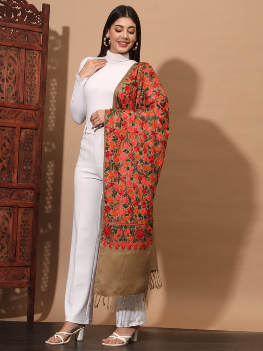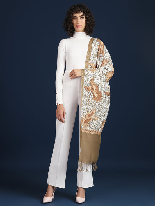 Kashmiri Aari Embroidery Woollen Stole for Women | Brown