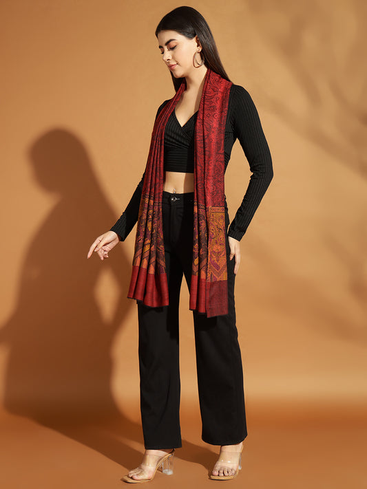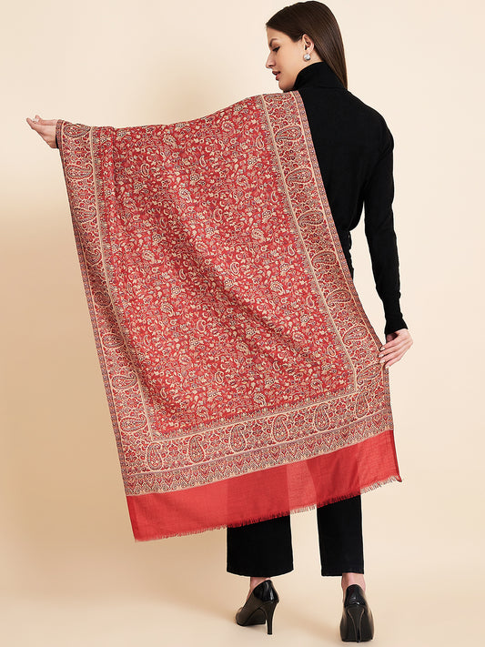 Kani Weave Woven Stole for Women in Paisley Jaal Patterns | Maroon