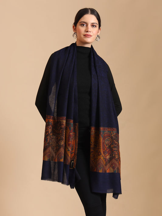 Women Pure Wool Kani Weave Soft Touch Stole | Blue