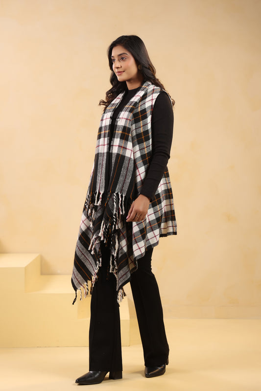 Women's Sleeveless Checkered Shrug Cardigan | Black