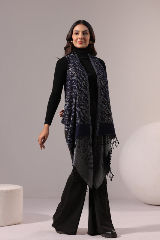 Women's Sleeveless Zari Pattern Shrug Cardigan | Navy Blue