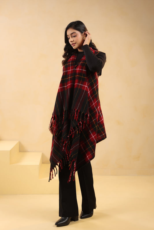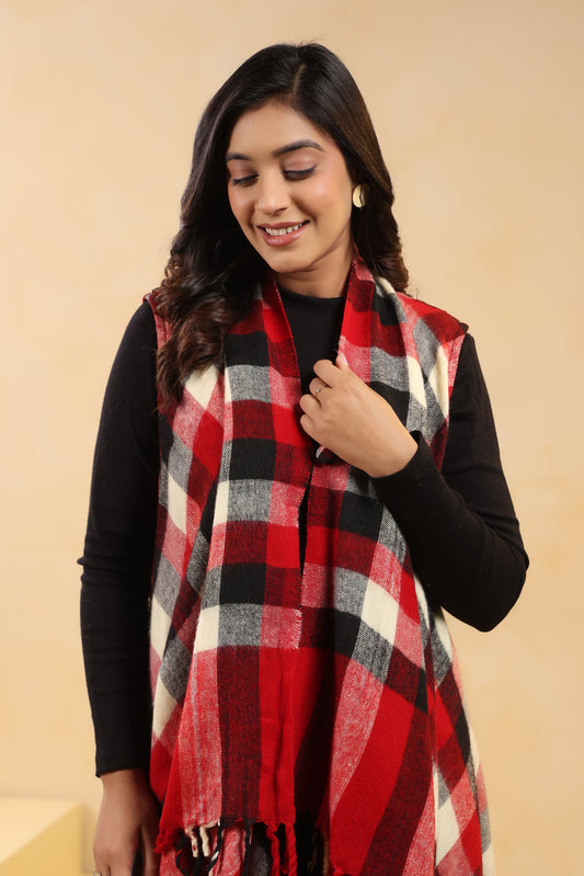 Women's Sleeveless Checkered Shrug Cardigan | Red