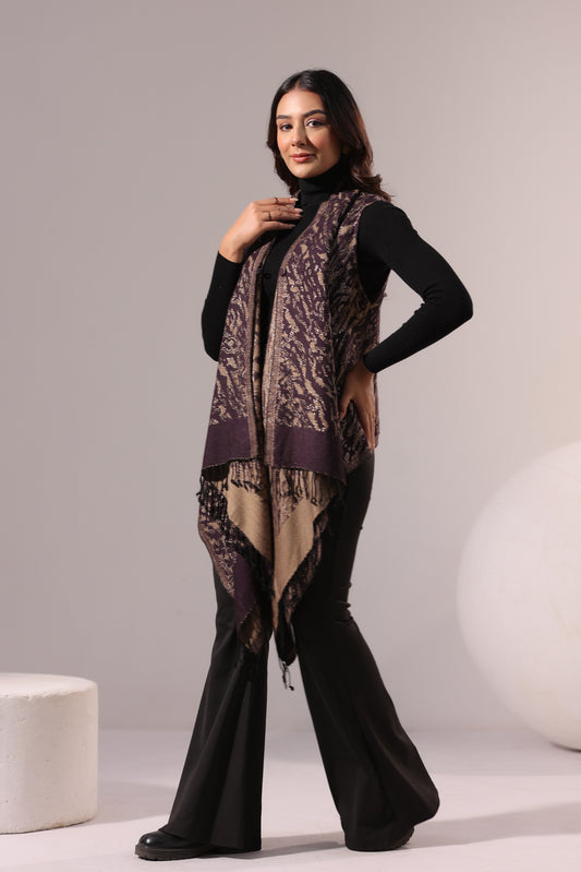 Women's Sleeveless Zari Pattern Shrug Cardigan | Purple