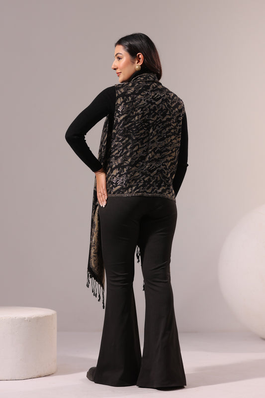 Women's Sleeveless Zari Pattern Shrug Cardigan | Black