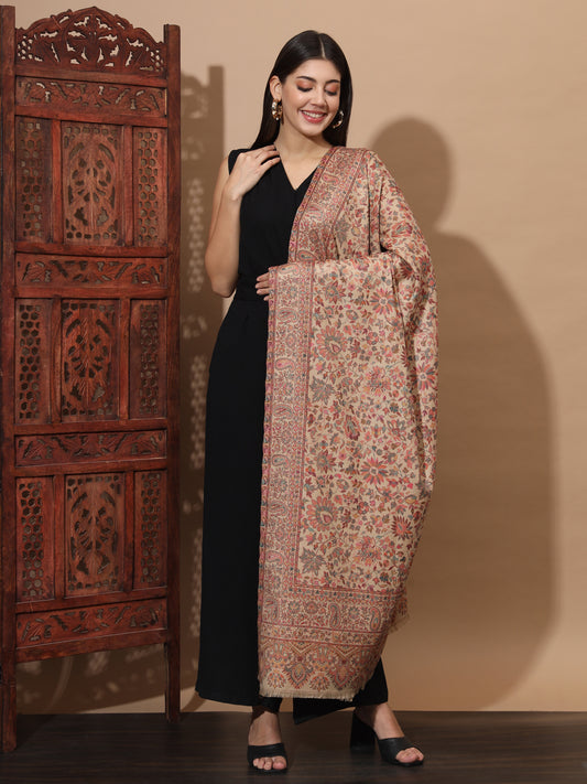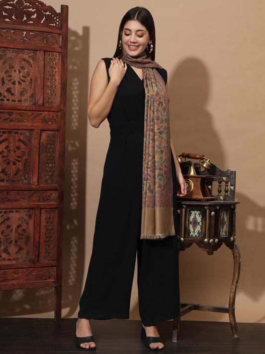 Woven Stole for Women with Daur Border in Woollen Kashmiri Design | Brown