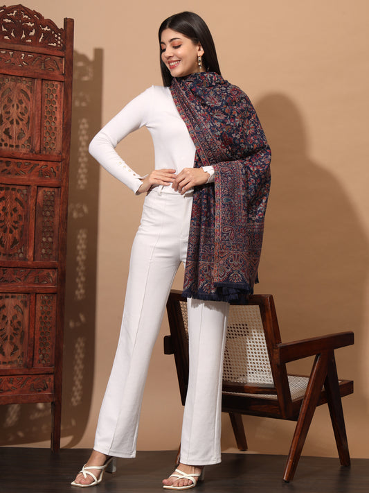 Kani Weave Woven Shawl for Women in Cutting with Floral Patterns | Blue