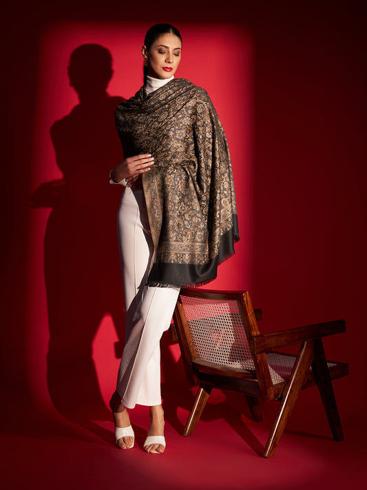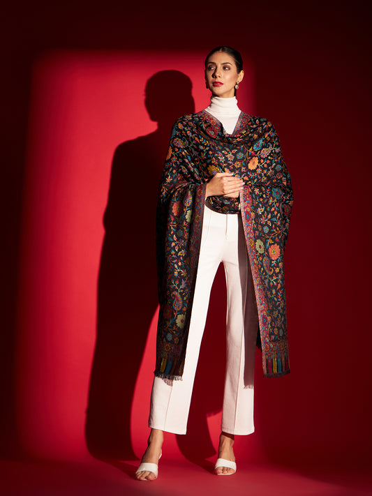 Kani Weave Woven Shawl for Women in Floral Patterns | Black