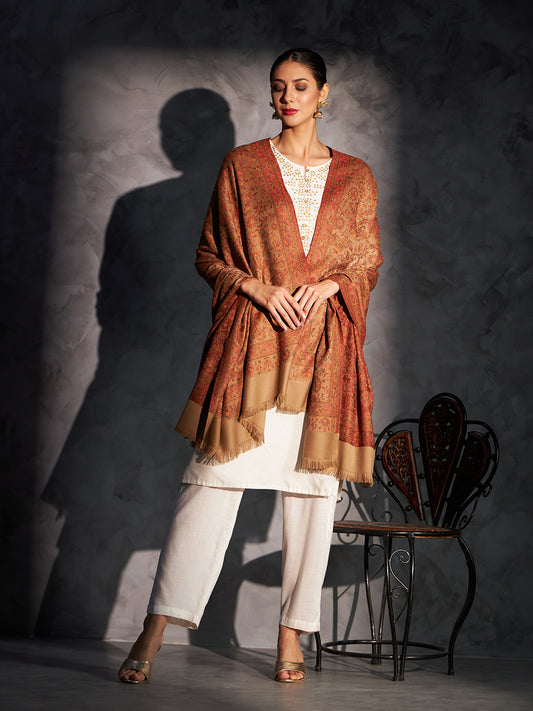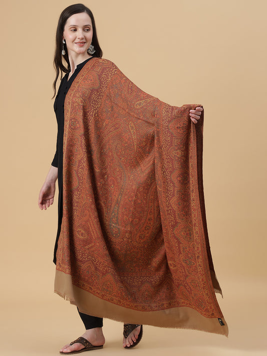 Woolen Shawl for Women in Paisley Design Weaving | Brown