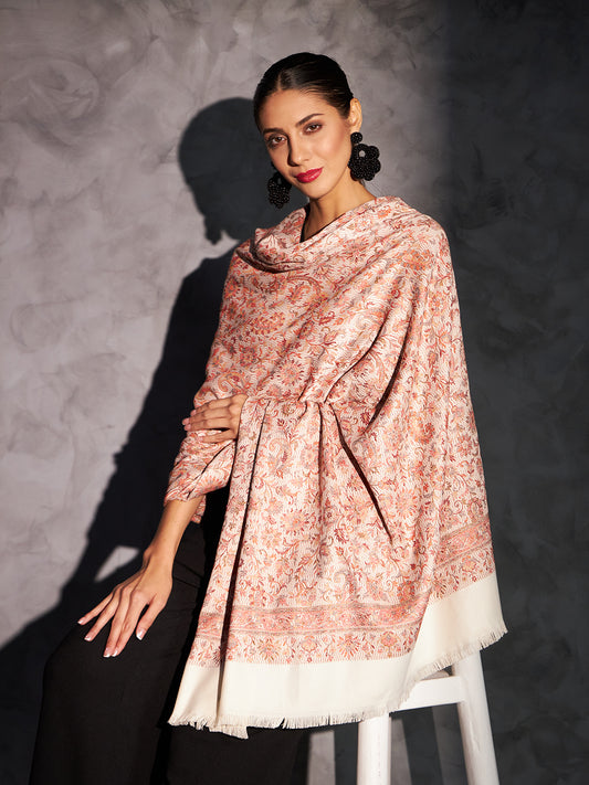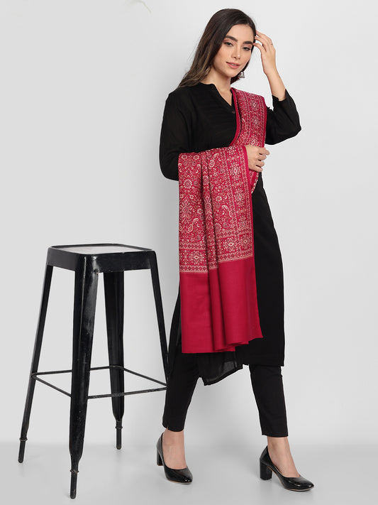 Jacquard Woollen Woven Shawl for Women in Jamawar Patterns | Pink