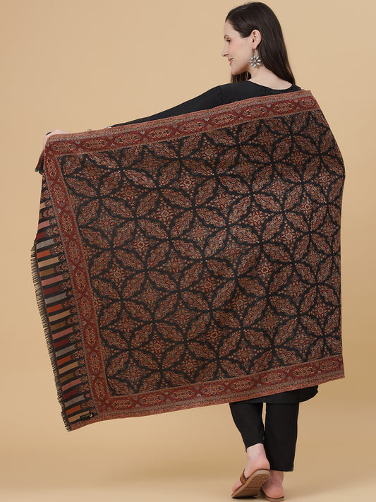 Jacquard Woven Shawl for Women in Royal Jamawar Patterns | Black