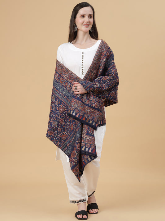 Kani Weave Woven Shawl for Women in Floral Patterns | Blue