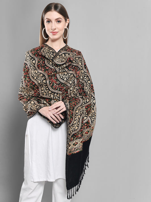 Kashmiri Aari Embroidery Woollen Shawl | Black