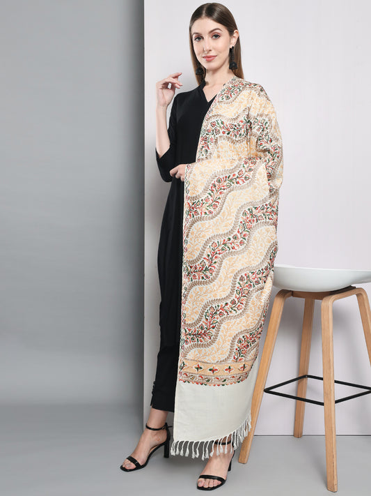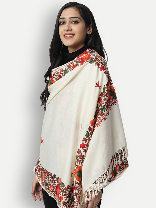 Kashmiri Aari Embroidery Woollen Shawl | Off White