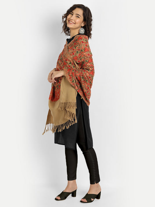 Kashmiri Aari Embroidery Woollen Stole for Women | Brown