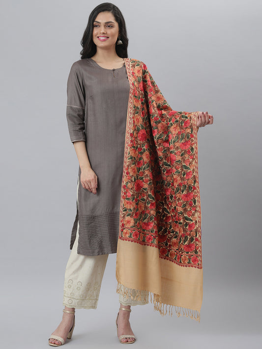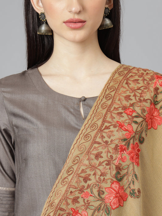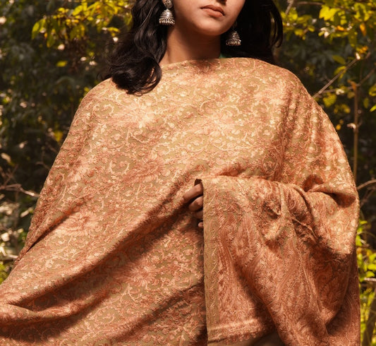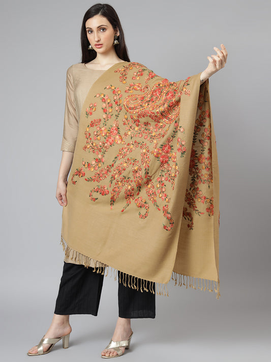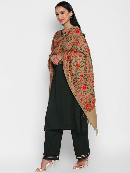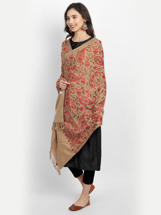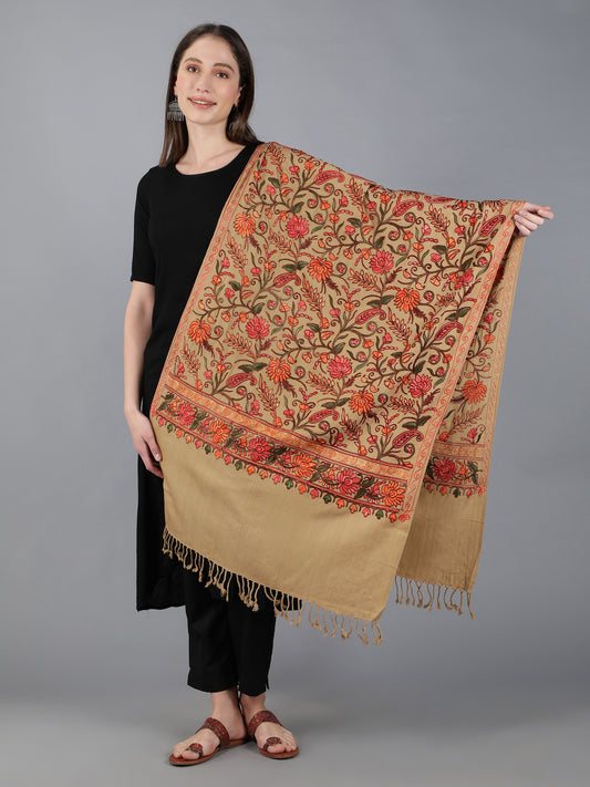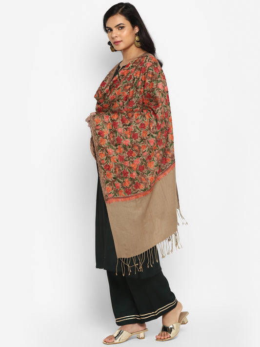 Kashmiri Aari Embroidery Woollen Stole | Brown