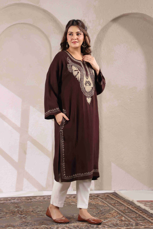 Kashmiri Pheran with Zari Embroidery | Maroon