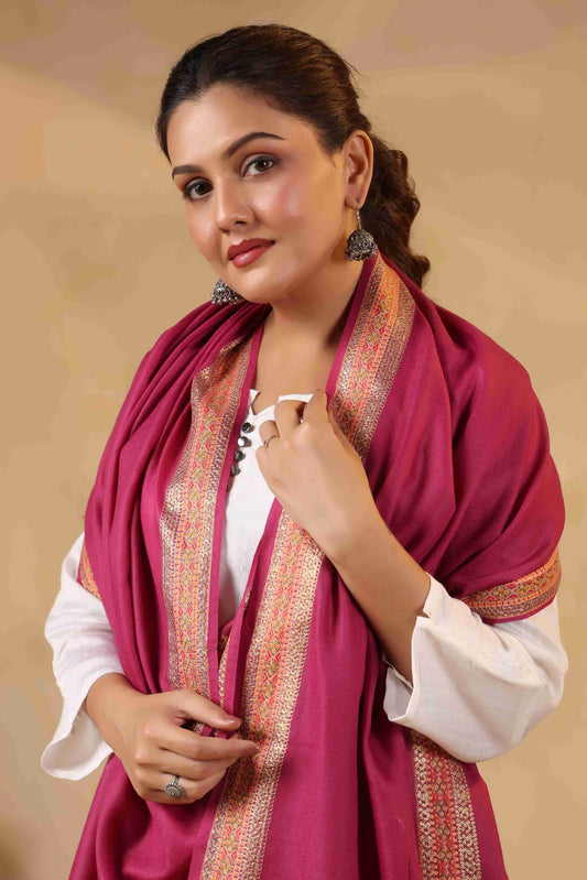 Kashmiri Sozni Zari Embroidery Shawl | Pink