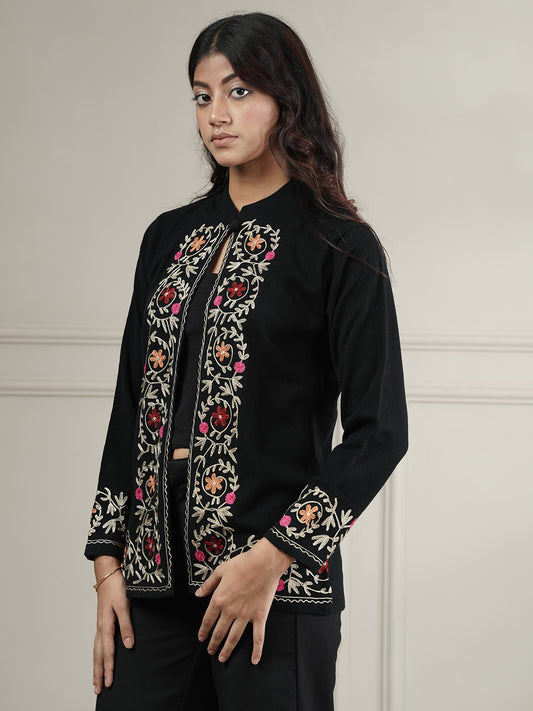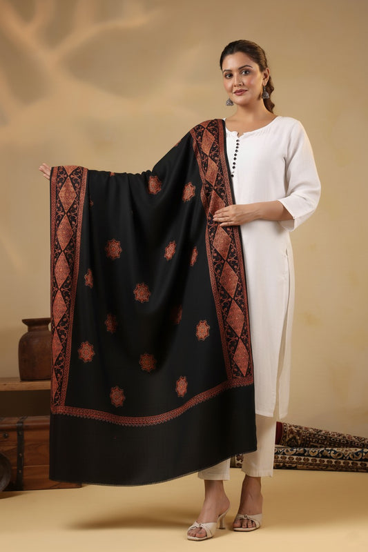 Kashmiri Sozni Floral Embroidery Shawl | Black