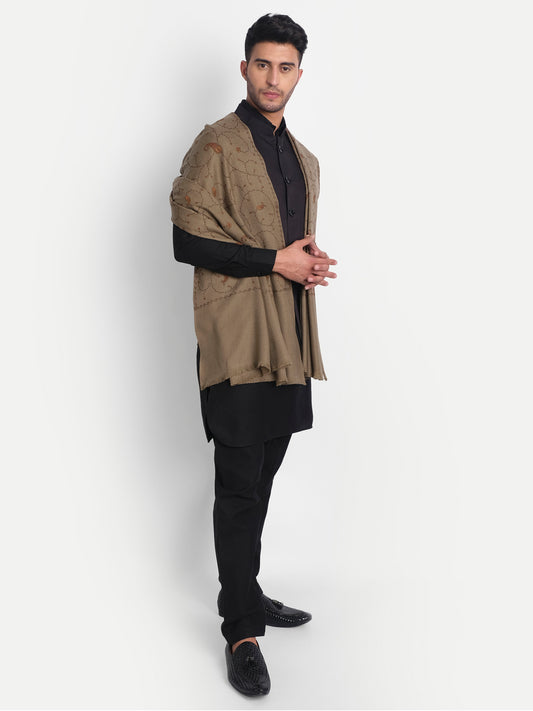 Kashmiri Sozni Embroidery Shawl for Men | Beige
