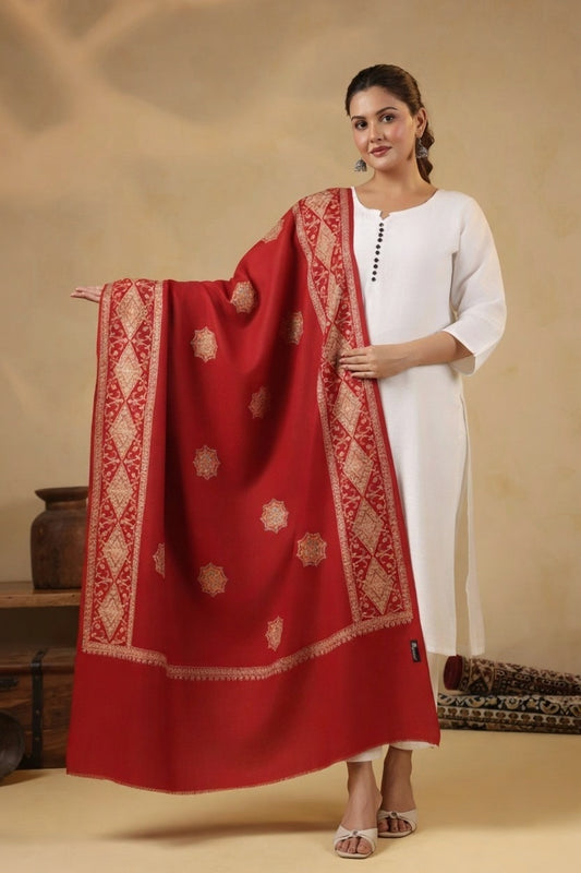 Kashmiri Sozni Floral Embroidery Shawl | Red