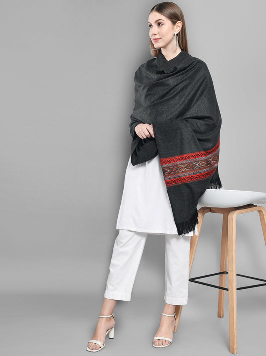 Kullu Himalayan Striped Border Shawl for Women | Charcoal