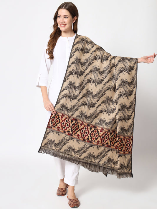 Kullu Himalayan Striped Border Shawl for Women | Brown