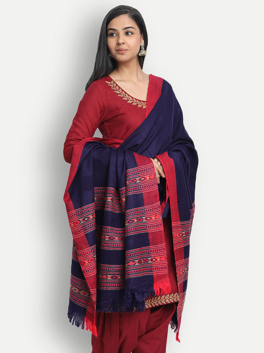 Kullu Himalayan Striped Border Shawl for Women | Blue