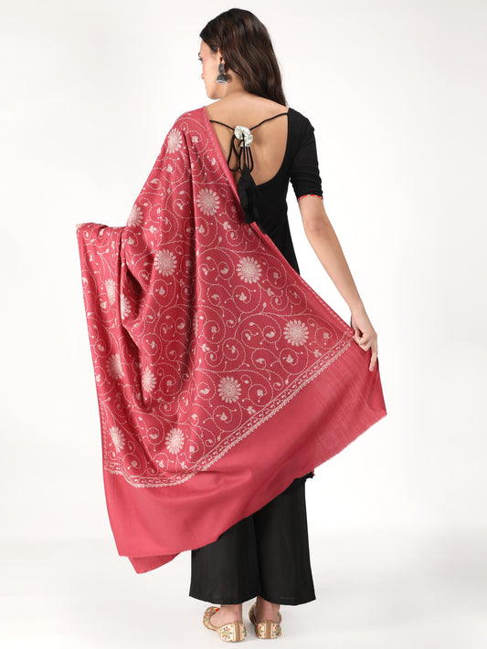 Fine Embroidery Paper Mache Kashmiri Wool Stole | Pink