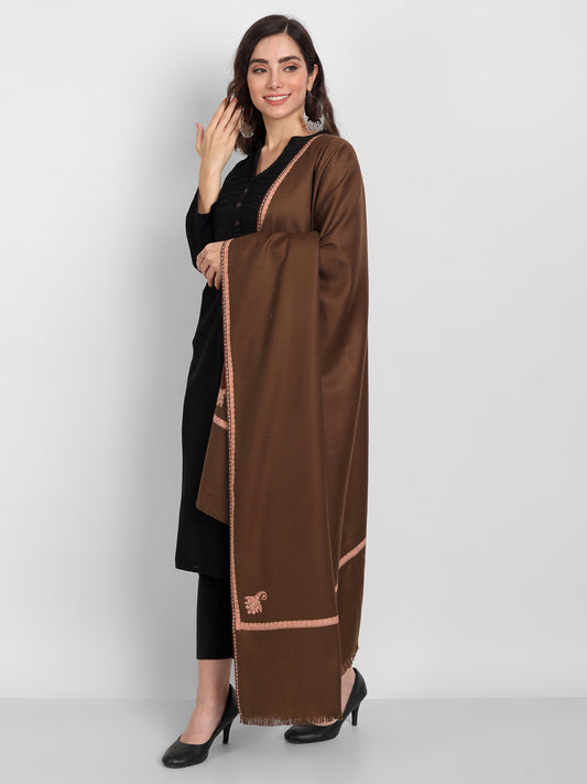 Fine Embroidery Paper Mache Kashmiri Wool Stole | Brown
