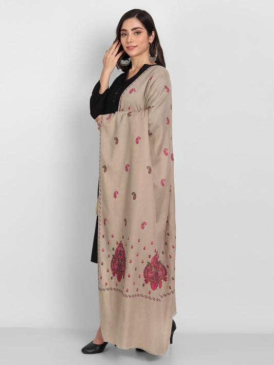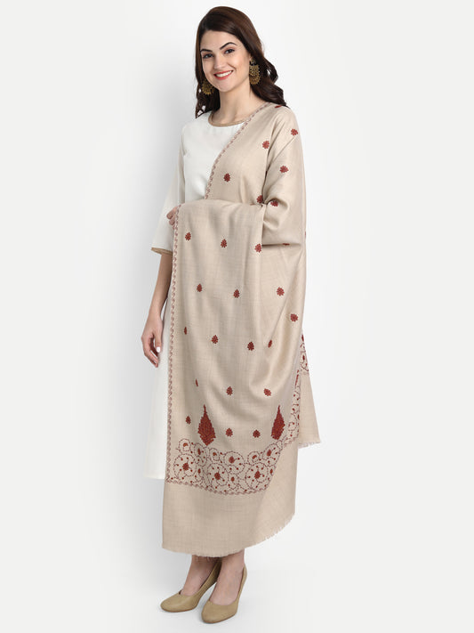 Fine Embroidery Paper Mache Kashmiri Wool Stole | Beige