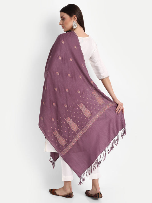 Fine Embroidery Paper Mache Kashmiri Wool Stole | Mauve