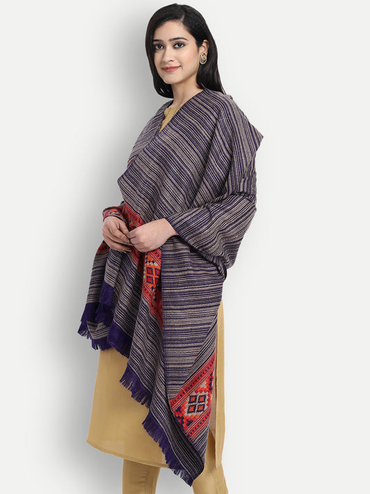 Kullu Stripes Himalayan Shawl | Maroon