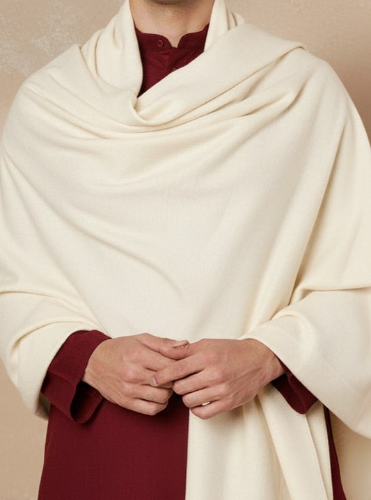 Light Weight Fine Wool Luxurious Stole for Men | White