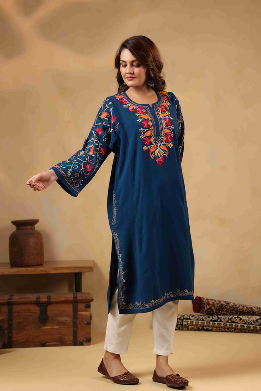 Multicolor Aari Embroidery Kashmiri Pheran | Blue